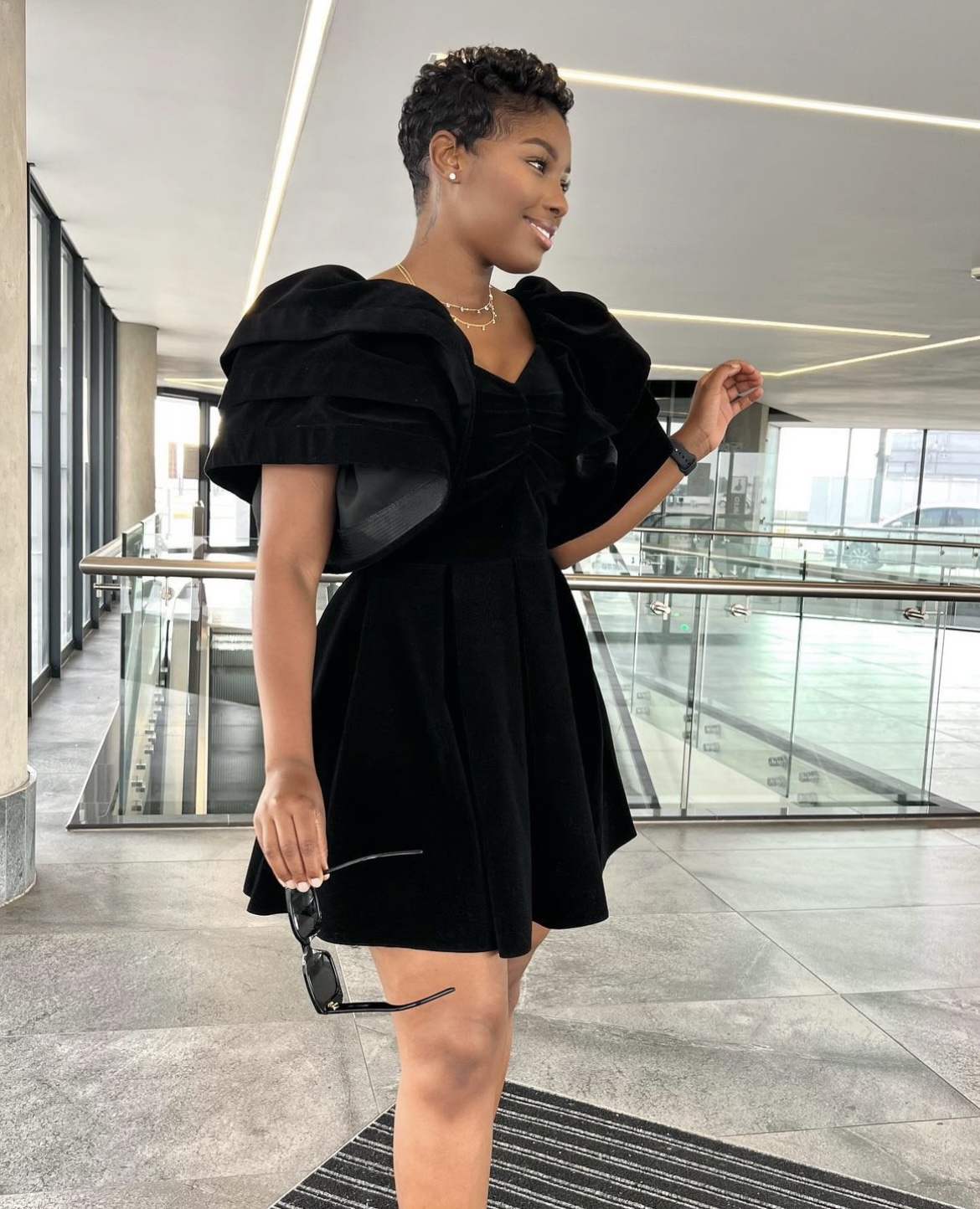 Her style is classy and timeless. This Bombshell uses textures and shapes to define her looks rather than patterns and prints.