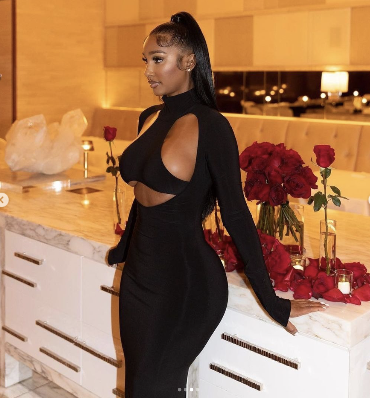 Along with Kelly and Lori, Bernice Burgos looked captivating and luxurious for her birthday this month in the popular gown. The Bronx native who is known for her beauty and being a video vixen, look exquisite and ethereal. Keeping her jewelry to a minimum and really allowing the dress to be the spotlight, Bernice set the internet ablaze in the form fitting cut dress.