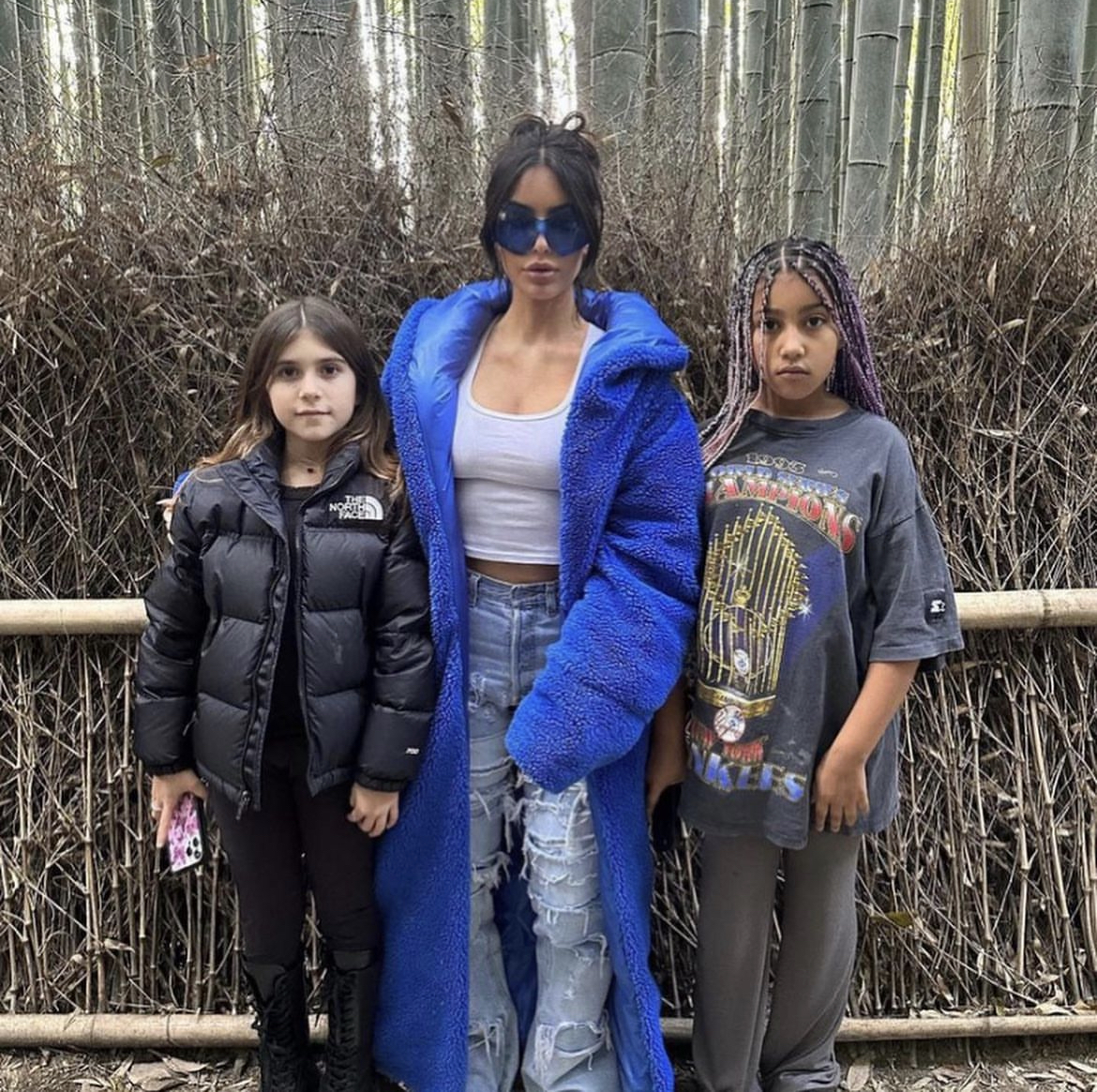 Earlier in the month, we spotted the Hulu star vacationing with all of her kids and niece Penelope Disick during a Japan getaway. During the escapade, Kim looked so futuristic with alien inspired sunglasses that matched her electric blue Rains FW23 RTW coat.