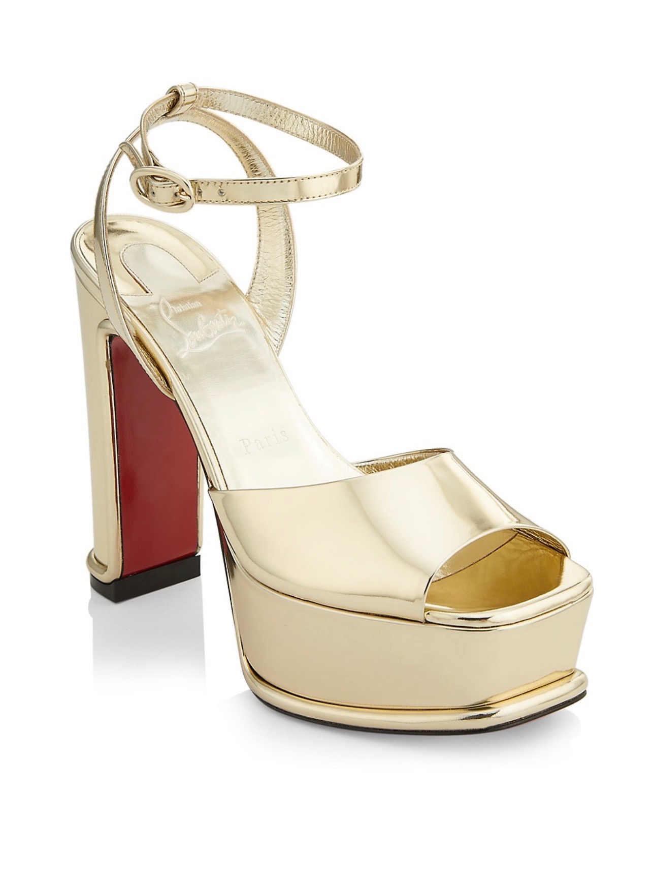 With these metallic gold platforms, you’ll be gone with the wind fabulous! Grab your crew and head to a nice brunch or girls night out in these new Christian Louboutin’s blocked heel platform sandals called, “Amali Alta.”
