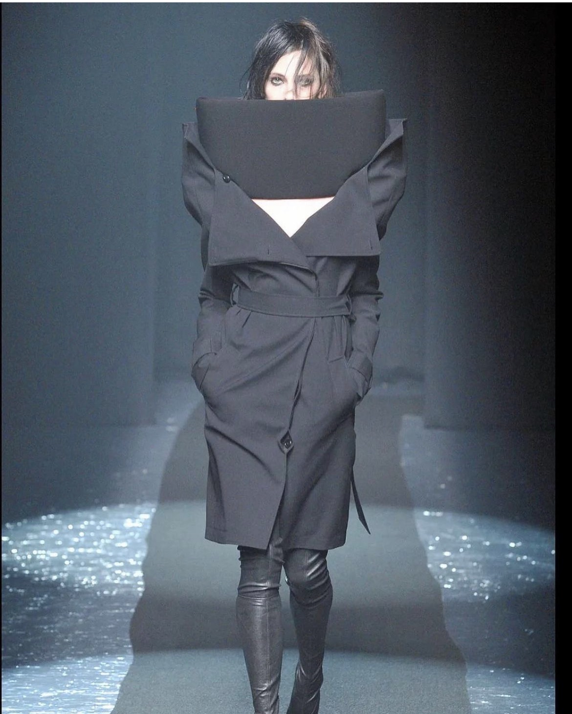 Along with this look, we’ve also been seeing both Kanye and Bianca covering their faces with masks a lot lately however, if you look back at fashion history, you’ll see that Maison Margiela was one of the first to do it back in 1989 as evident in the photo below.