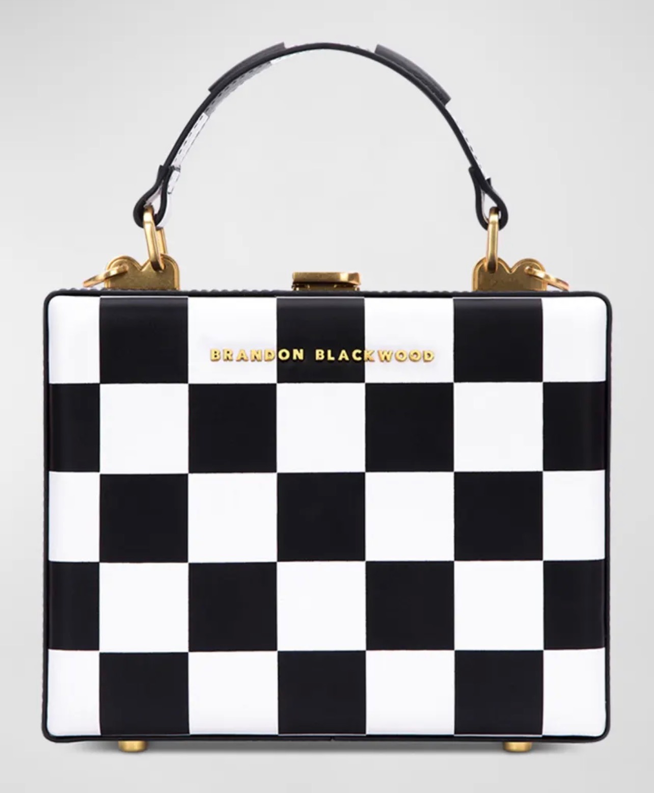 Looking for something to wear during the summertime? We’ve got you covered with Black owned designer Brandon Blackwood’s checkered print black and white handbag. By splurging $300.00, you can get your hands on Blackwood’s ‘Kendrick Trunk Checkered Leather Top- Handle Bag’.