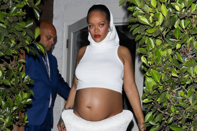 Rihanna Shows Off Baby Bump at Giorgio Baldi in Sculptural White Maison Alaïa Skirt Set