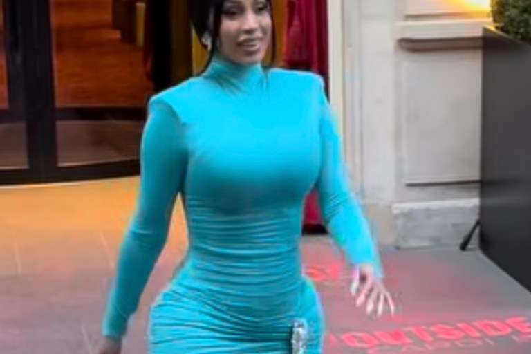 Featured Cardi B Shines in Marine Serre Regenerated Graphic Mini Dress and Vintage Louboutin Boots at Atlanta Meet & Greet