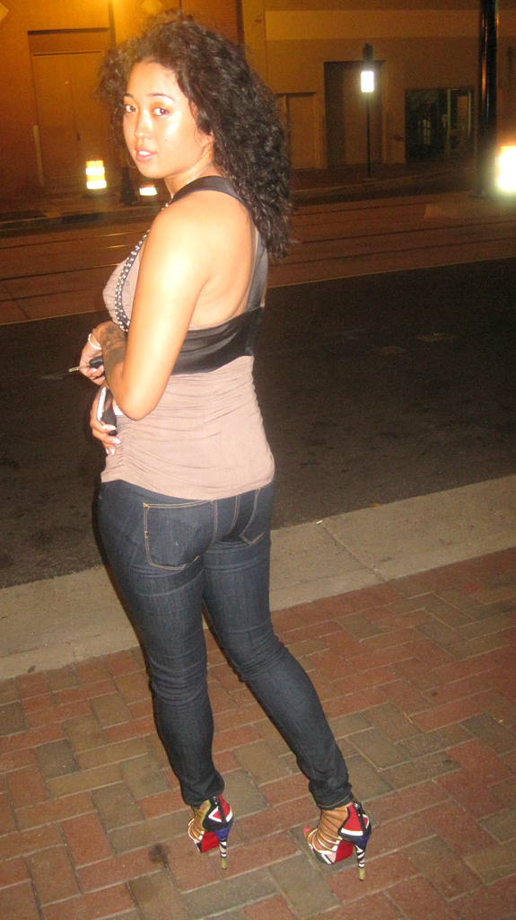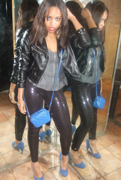 She says, “I’m a 25-year-old fashion blogger/model. I’m rocking BeBe skinny leg jeans, BeBe Vest and Christian Louboutin Multi-Color Ulonas.”