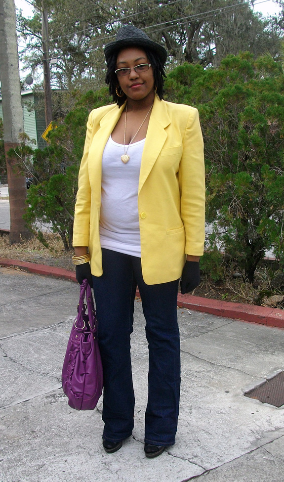 “I love bright colors, they are my favorite thing, besides denim. I also have had to learn that as a mom and college student, budgeting is crucial. I’m a recessionista. I stick to stores that I know have great quality at low prices, but I also love thrift shopping, or my favorite term, Goodwill Hunting. I’ve gotten all of my colorful blazers from there, and even a sequined jacket. I would hope that by my daughter seeing me take risks and dressing different from the average black woman in my town, she will grow up with the confidence to be who she wants to be.”
