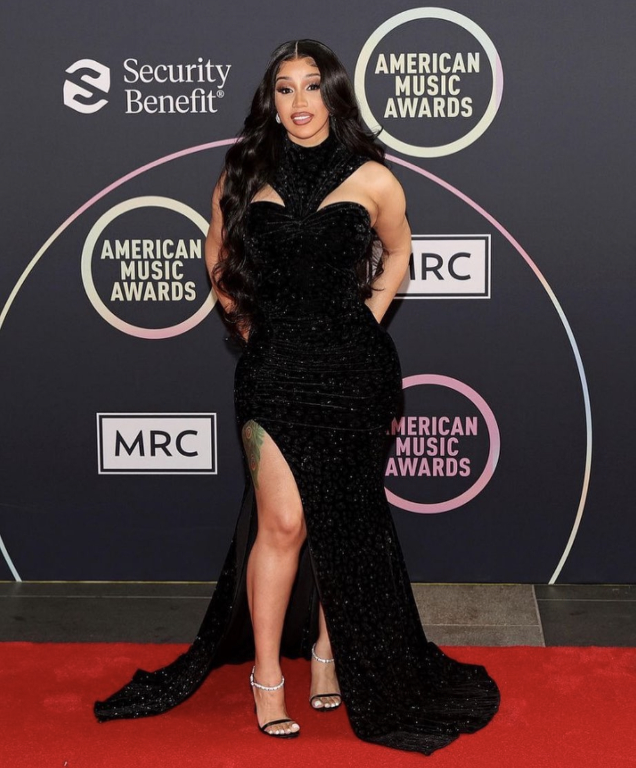 The 2021 American Music Awards, or AMAs, is set to premiere on Sunday, November 21st with rapper Cardi B leading as this year’s host. For the award’s official red carpet rollout in Los Angeles, Cardi B grabbed everyone’s attention with her elegant black velvet halter-neck dress.